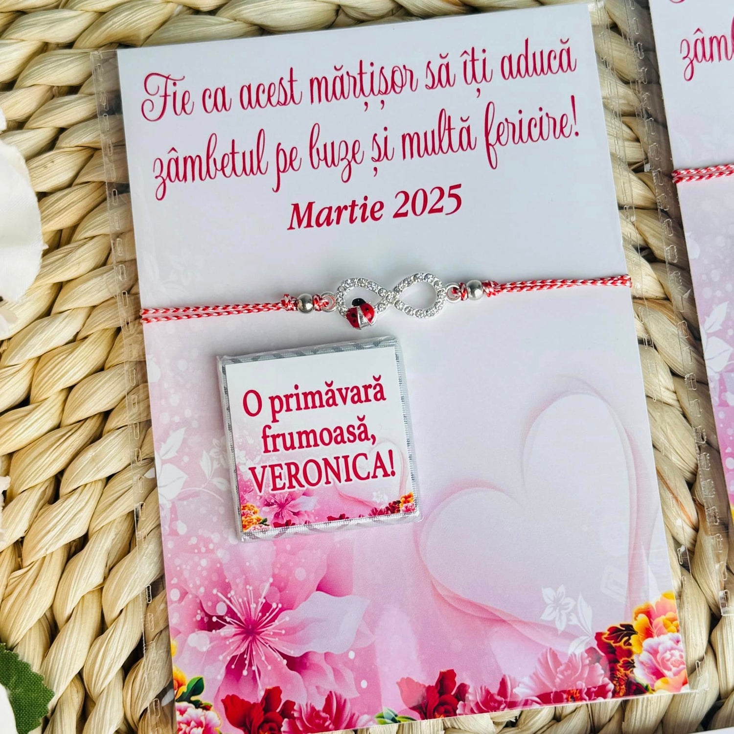 Set Mărțișor – Broșă Trifoi Roz și mini cicolată cu mesaj