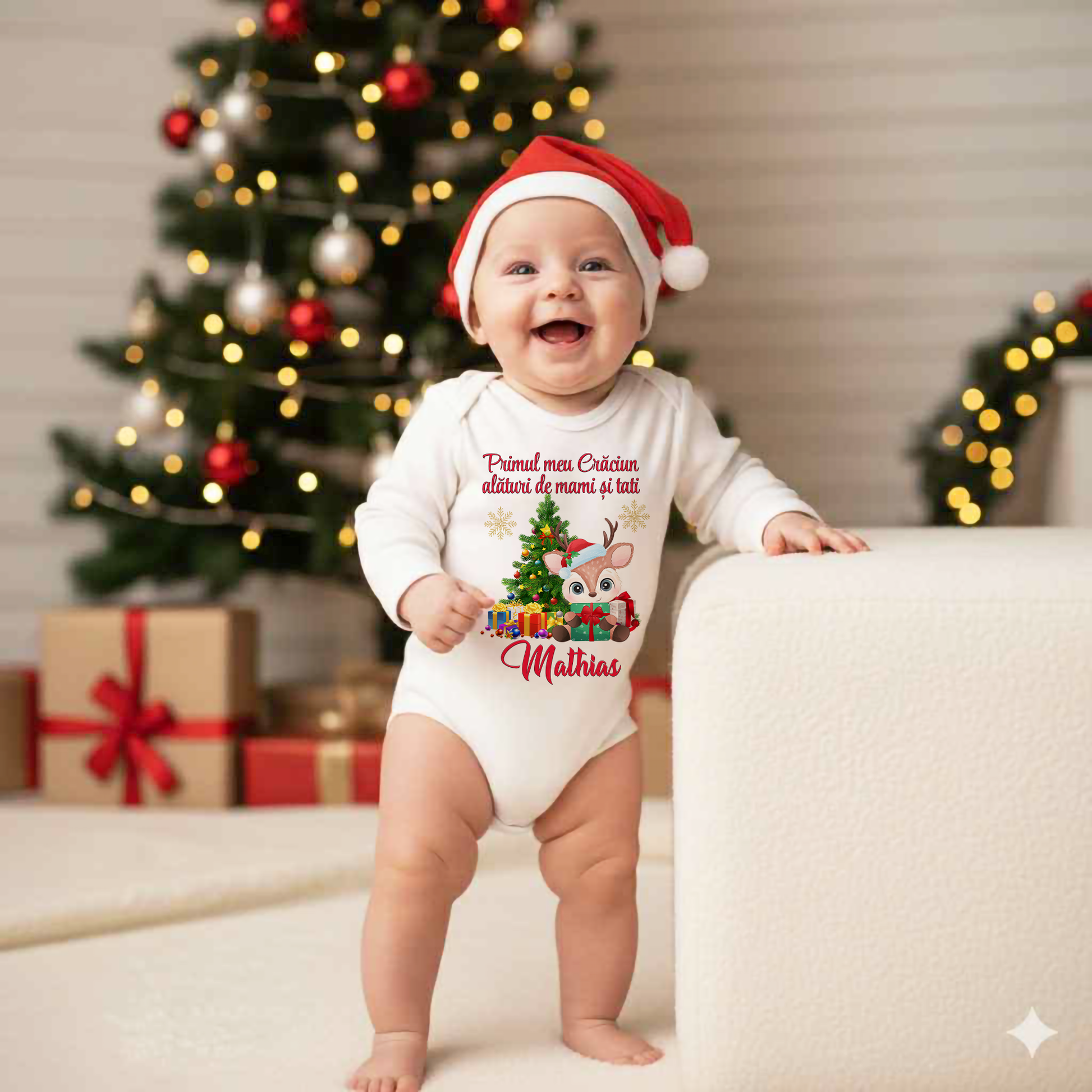 Body personalizat „Primul meu Crăciun” – creat special pentru micuții care sărbătoresc pentru prima dată magia Crăciunului! 🎄