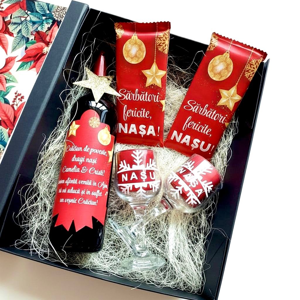 2 Ciocolate (cu urările "Sărbători fericite, NAȘU!" și "Sărbători fericite, NAȘA!").