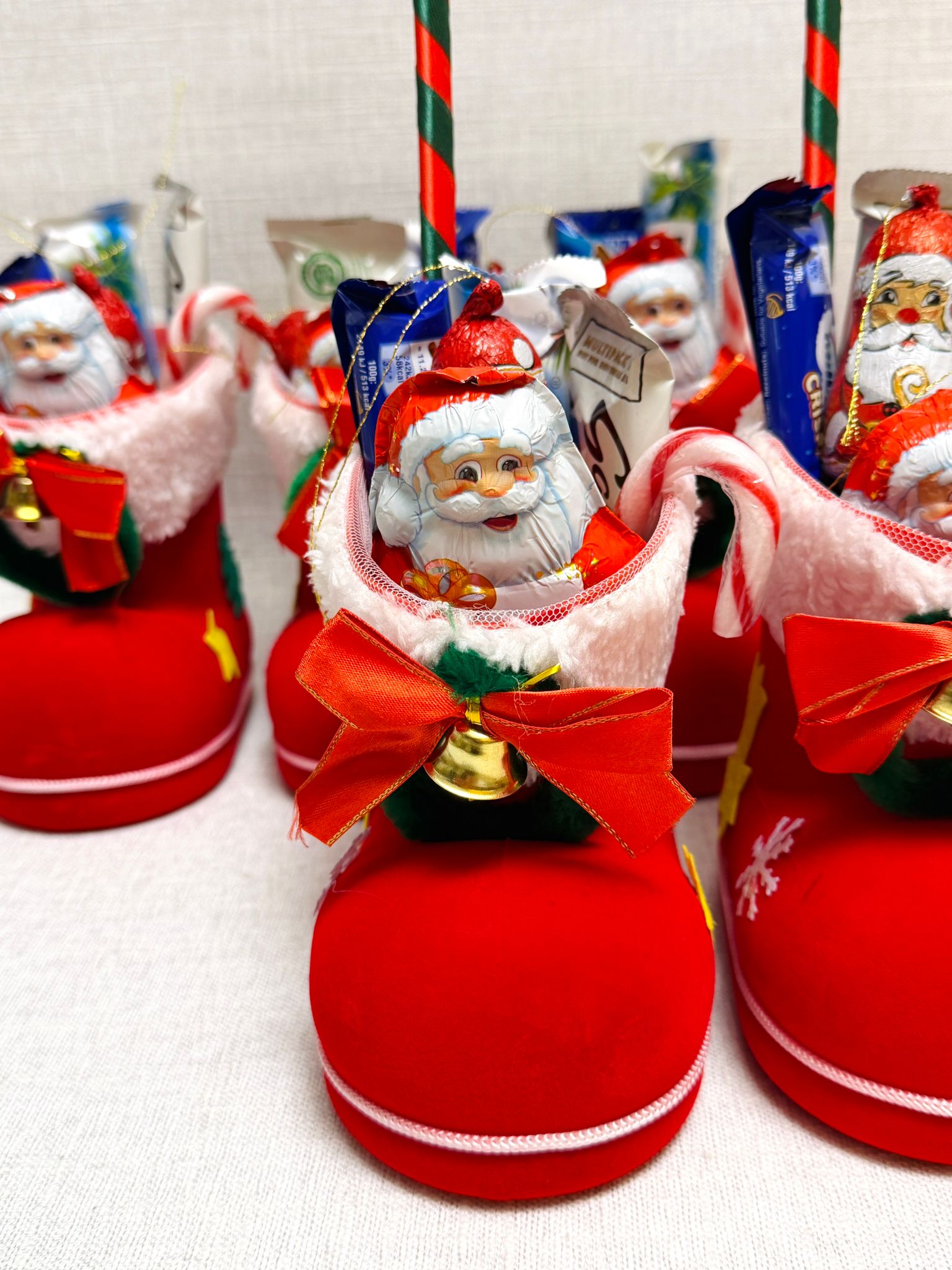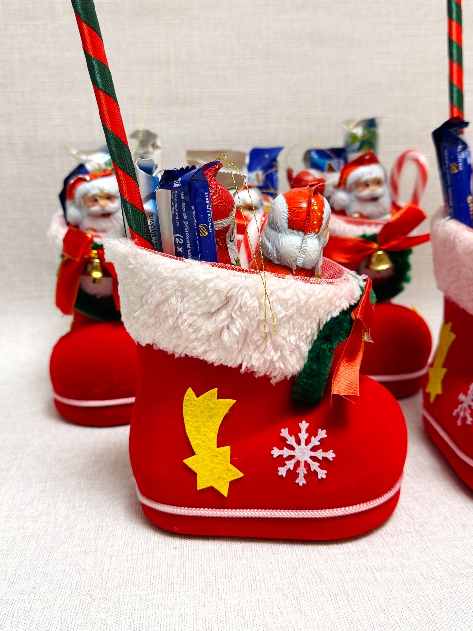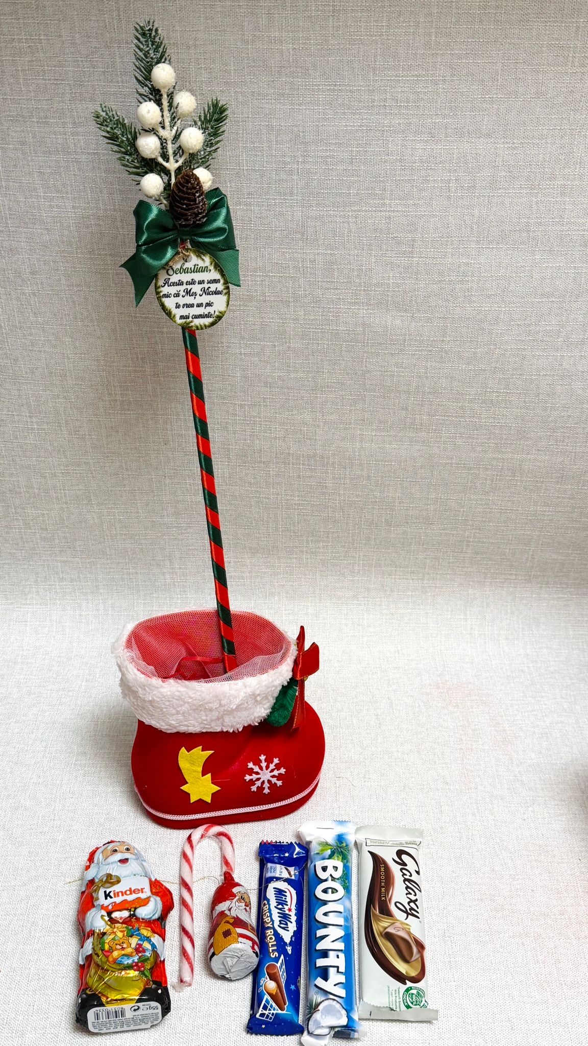 🎄 Ghetuță de Crăciun special pregătită pentru cei mici! Realizată într-un design festiv, plin de culoare și farmec, ghetuța este umplută cu dulciuri delicioase, pregătite să aducă zâmbete și emoție în seara lui Moș Nicolae.