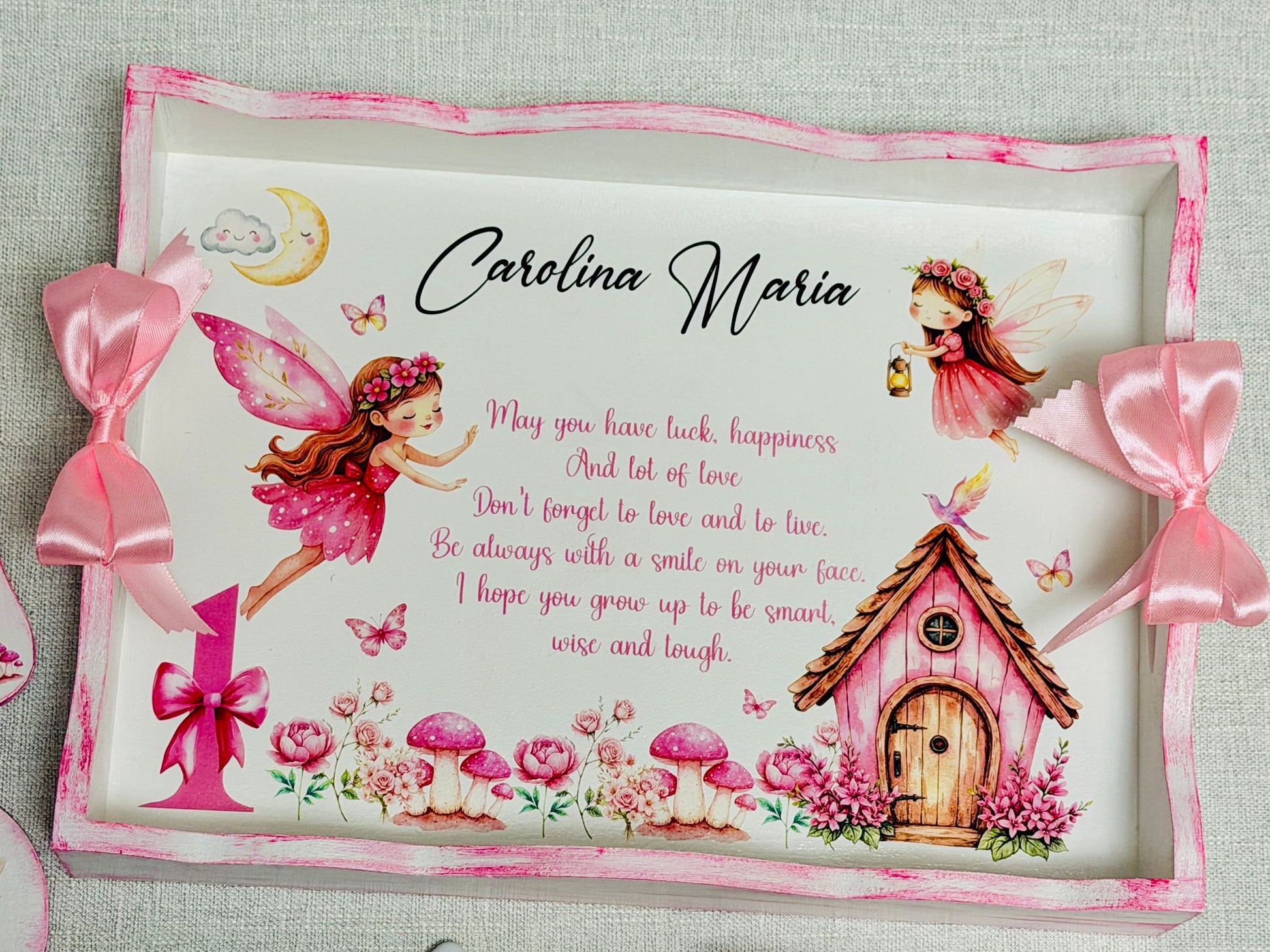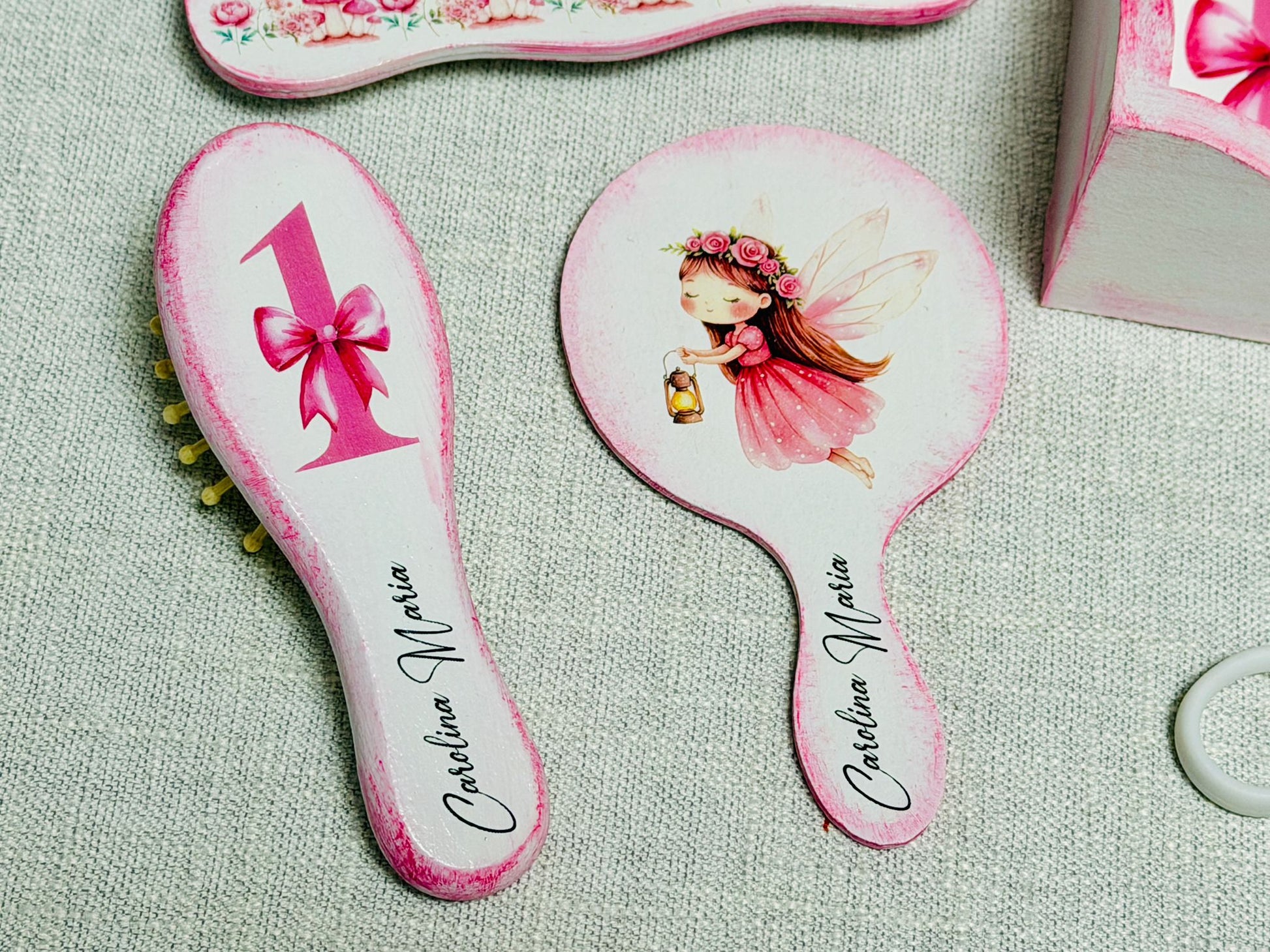 Acest set de moț conține toate piesele esențiale pentru tăierea moțului: tavă, foarfecă, cutiuță pentru șuviță, perie, oglindă, ramă foto și elastic de moț. Fiecare element este realizat cu atenție, pentru ca momentul special al copilului să fie magic și memorabil.